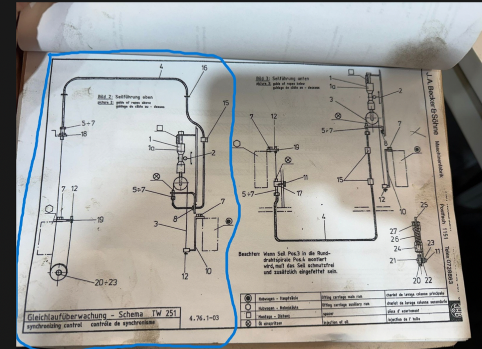 Sie kaufen hier ein Seilset inklusive Spirale (cilindro hidraulico rope and spiral) )für eine J.A.Becker Hebebühne.