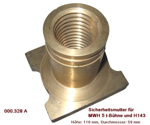 | Sie kaufen hier eine Folgemutter für MWH/Consul 2 Säulen - Bühne. Sie haben die Wahl zwischen einer Mutter od. mehreren Muttern. Die genaue Menge können Sie unter dem Angebotspreis bei der Anzahl eingeben. Die Muttern auch passend für Typ H143S. Maße: 59mm Durchmesser, 110mm Höhe (Trapezgewinde 45 x 6mm). Andere Ersatzteile finden Sie in unserem Shop, indem Sie auf die entsprechende Kategorie klicken. Nachdem Sie den Artikel in den Warenkorb gelegt haben, können Sie weitere Artikel in unserem Onlineshop kaufen. Fragen beantworten wir auch gerne per Email oder unter +49(0)176/21193525 und +49(0)38295/774067. |