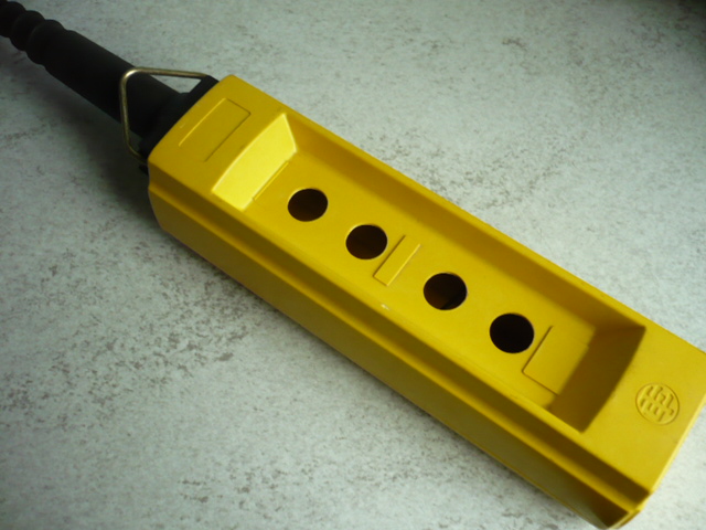 | Sie kaufen hier einen Steuerschalter (Control Bottle). Sie haben die Wahl zwischen einer oder mehreren Bedienflaschen. Beschreibung: Steuerbirne für 4 Wahltasten Typ XACB04 Breite 98mm x Länge 307mm + 190mm Kabelgummi Industriebauform Betriebsspannung Uni: 300 V AC-4 e 2,5A AC-3 le 6A / AC-11 le 1A / In8h 10A Schutzart IP657 Andere Ersatzteile finden Sie in unserem Shop, indem Sie auf die entsprechende Kategorie klicken. Nachdem Sie den Artikel in den Warenkorb gelegt haben, können Sie weitere Artikel in unserem Onlineshop kaufen. Fragen beantworten wir auch gerne per Email oder unter +49(0)176/21193525 und +49(0)38295/774067. |