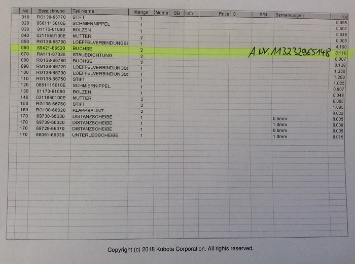 1x Huelse für Kubota Minibagger Typ KX41-2 (V) zweite Generation KUB Nr....