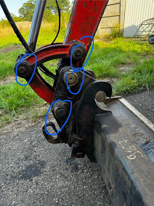 Sie kaufen hier eine Set für Löffelaufnahme u.a. Kubota KX 015-4 KX016-4 KX018-4 KX019-4 diverse Buchsen/Bolzen für den Löffelstiel/ Verbindungsstück. |