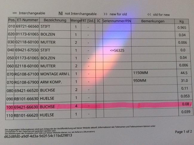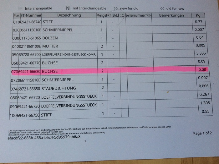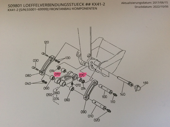 1x Lagerbuchse für Löffelverbindungsstück + Arm Löffelstiel Kubota Minibagger Typ KX41-2 (S/V/Alpha) zweite Generation KUB Nr.69421-6663-0 oder 68721-6663-0.