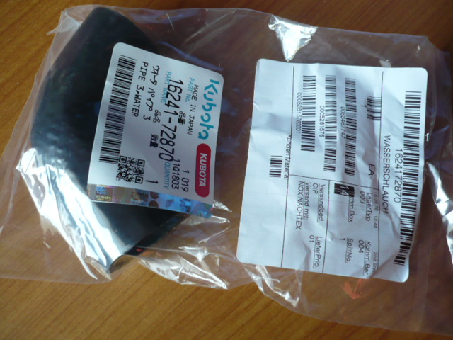1x Originaler Wasserschlauch (pipe, water pump) für Kubota Minibagger Typ...