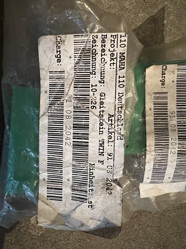 Sie kaufen hier ein Führungsstück (sliding pad - quan/slider block) für Maha Hubwagengestell / Scherenbühnen (3 t Tragkraft). |