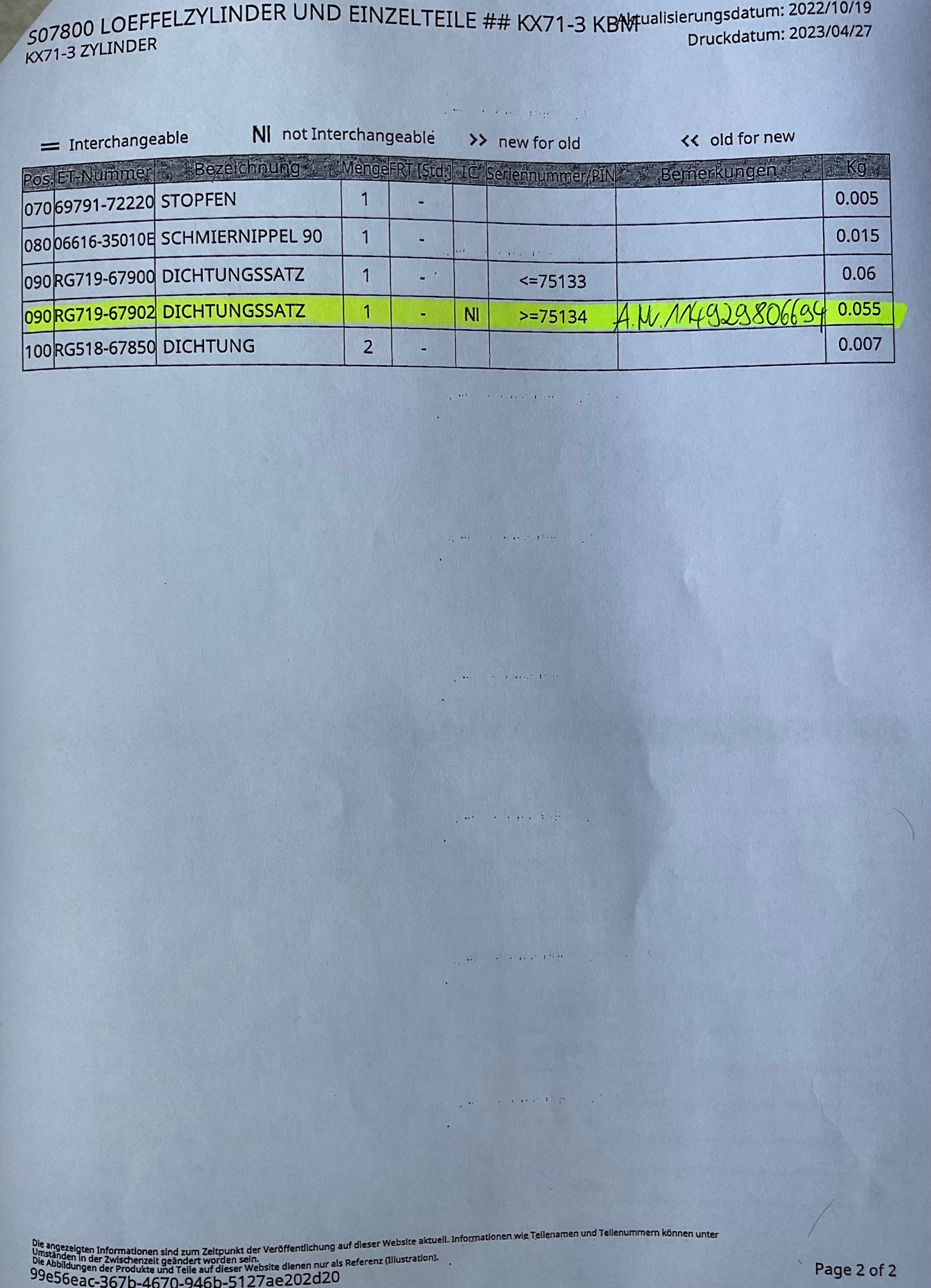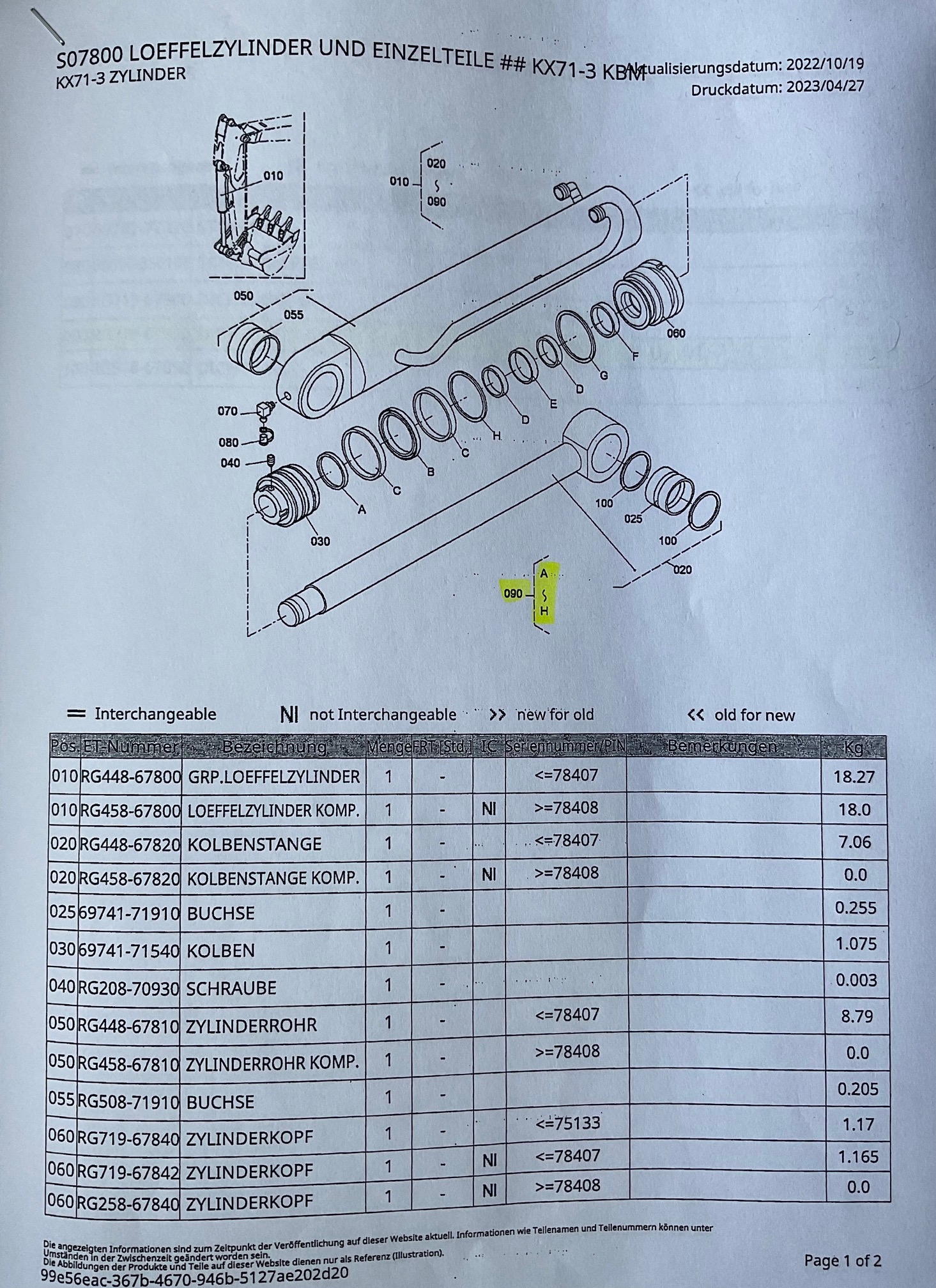 Sie kaufen hier eine Rohrzylinderabdichtung für u.a. Kubota KX61-3, KX71-3.
