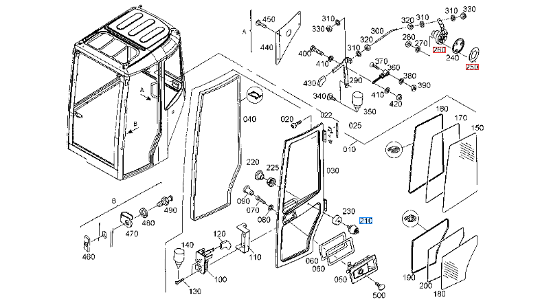 1x Buchse für Türverriegelung an Kabinentür (key, pin, lock, bolt, Pos. 230) für Kubota Minibagger u.a. Typ KX61-3 dritte Generation KUB Nr. RG518-4729-0.