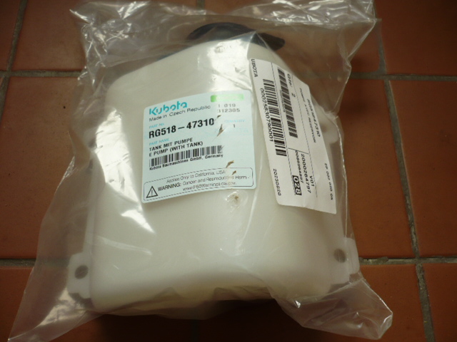 1x Scheibenwischwasserbehälter inkl. Pumpenmotor (E-Pump with tank) für Kubota Minibagger u.a. Typ KX 61-3 / 71-3 dritte Generation KUB Nr. KUB RG518-4731-0.