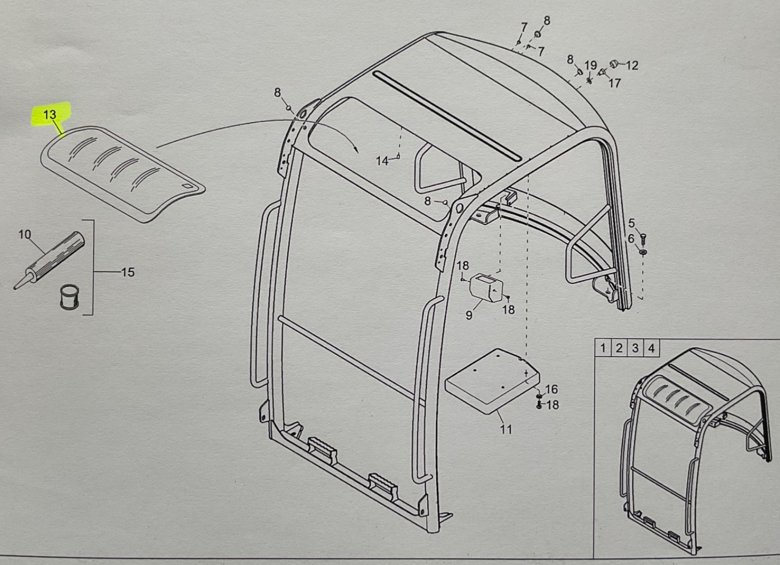1x Dachscheibe für Kabine oben, verbaut in Wacker Neuson Minibagger u.a. Typ ET24 alte Artikel Nr.301230698 Part Nr. 1000263523.