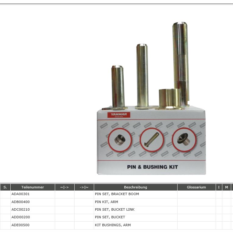 Sie kaufen hier ein Set für Löffelaufnahme u.a. Yanmar B 18 diverse Buchsen für Montagearm/ Löffelstiel/Löffelzylinder. |