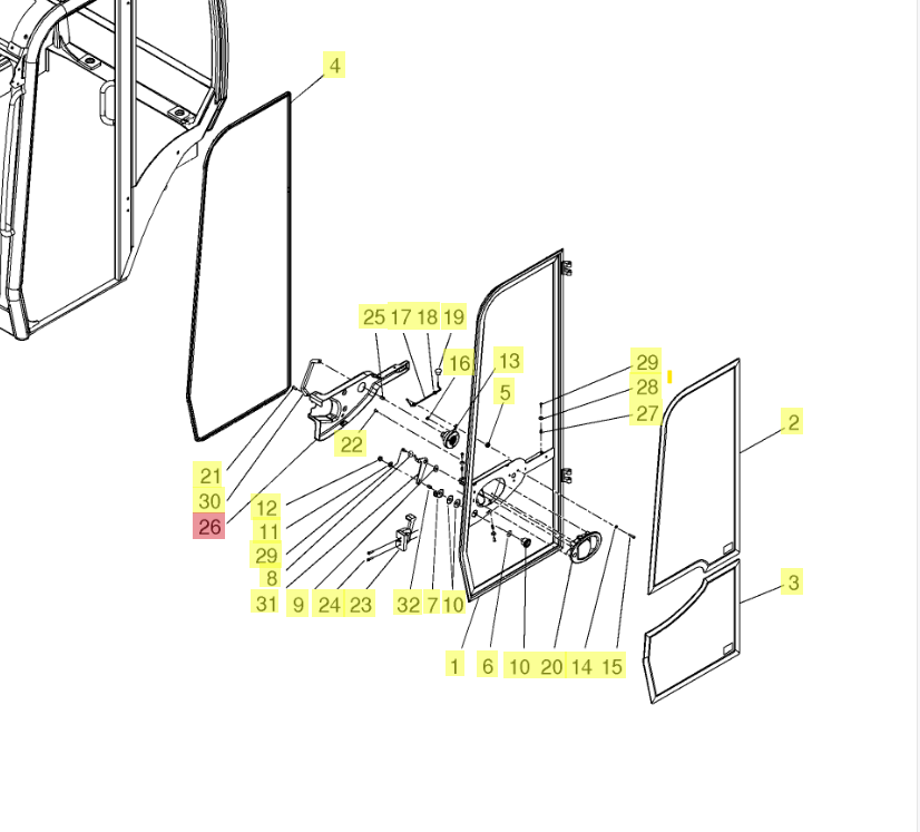 1x Türverkleidung innen für Kabinentür Yanmar Minibagger Typ SV 17 EX, SV 16, SV 15, SV 17 Yan Nr. 172A59-69430.