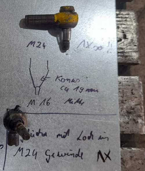 1x M24 Spurstangenkopf mit Rechtsgewinde für Gabelstapler des Herstellers VEB Verlade-und Transportanlagen Leipzig Paul Fröhlich.