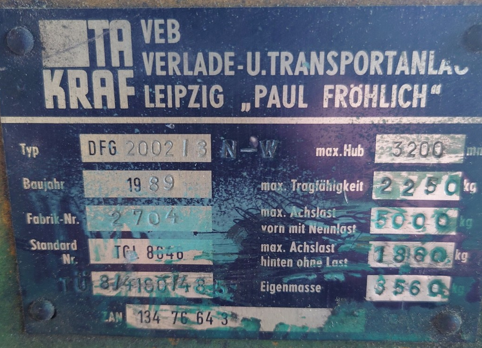 Tragfähigkeit: max. 2250 kg