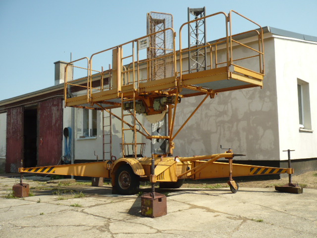 Die Bauhebebühne (work platform) ist voll funktionstüchtig, die Technik wurde z.T. von einer Fachwerkstatt erneuert (z.B. Rücklichter, Endschalter, Kabel, Anschlussdose CEE 16A). Die Bühne steht seit jeher im Trocknen.