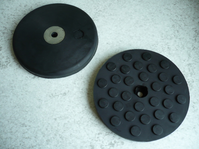 Maße: Der Vollgummiteller wird mit Stahleinlage geliefert und ist passend für 120 mm Durchmesser und 15 mm Höhe. Die flache Ausführung besitzt ein Loch in der Mitte.