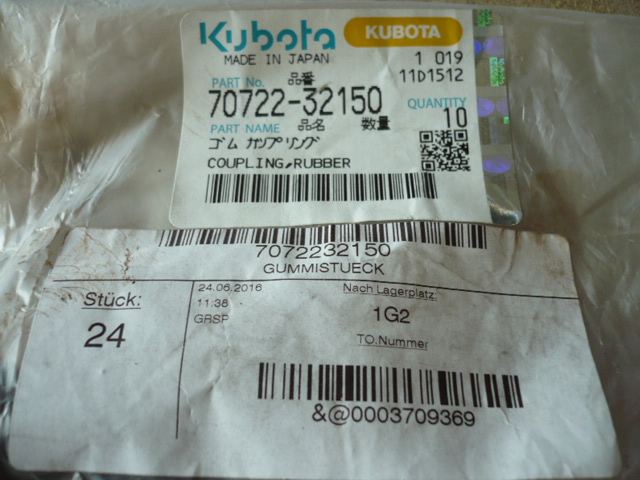 | Sie kaufen hier einen Gummipuffer für u.a. Kubota KX41, KX41-2, KX 61-2, KX91-2 . Sie haben die Wahl zwischen einem oder mehreren Gummilagern. Maße: 25mm Durchmesser x 21mm Breit x 9mm Innendurchmesser. Andere Ersatzteile finden Sie in unserem Shop, indem Sie auf die entsprechende Kategorie klicken. Nachdem Sie den Artikel in den Warenkorb gelegt haben, können Sie weitere Artikel in unserem Onlineshop kaufen. Fragen beantworten wir auch gerne per Email oder unter +49(0)176/21193525 und +49(0)38295/774067. |