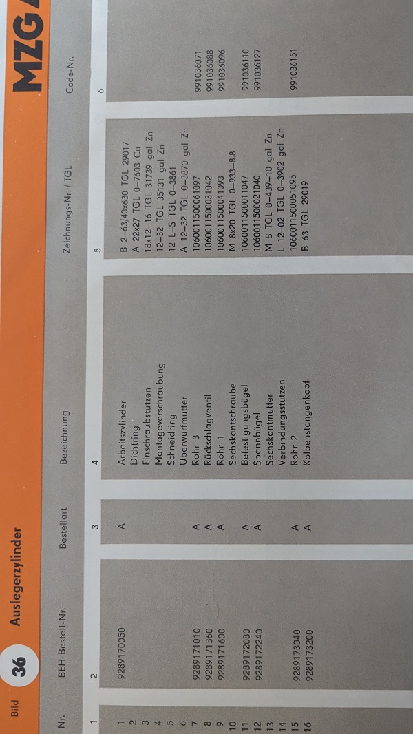 | Sie kaufen hier sechs Dichtringe (2 x Kolbendichtring, Stangendichtring, Abstreifring, 2x O-Ring) für MTS Traktor / VEB Orsta-Hydraulik TGL 10906. Sie haben die Wahl zwischem einem oder mehreren Dichtsätzen. Zylinderdaten: B1-63/40x500 TGL 10906 oder B2-63/40x630 TGL 29017 (Stange = 40mm Durchmesser). Andere Ersatzteile finden Sie in unserem Shop, indem Sie auf die entsprechende Kategorie klicken. Nachdem Sie den Artikel in den Warenkorb gelegt haben, können Sie weitere Artikel in unserem Onlineshop kaufen. Fragen beantworten wir auch gerne per Email oder unter +49(0)176/21193525 und +49(0)38295/774067. |