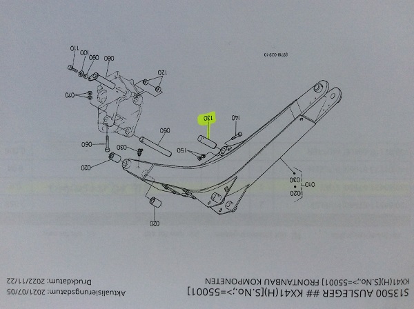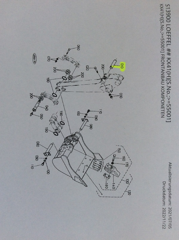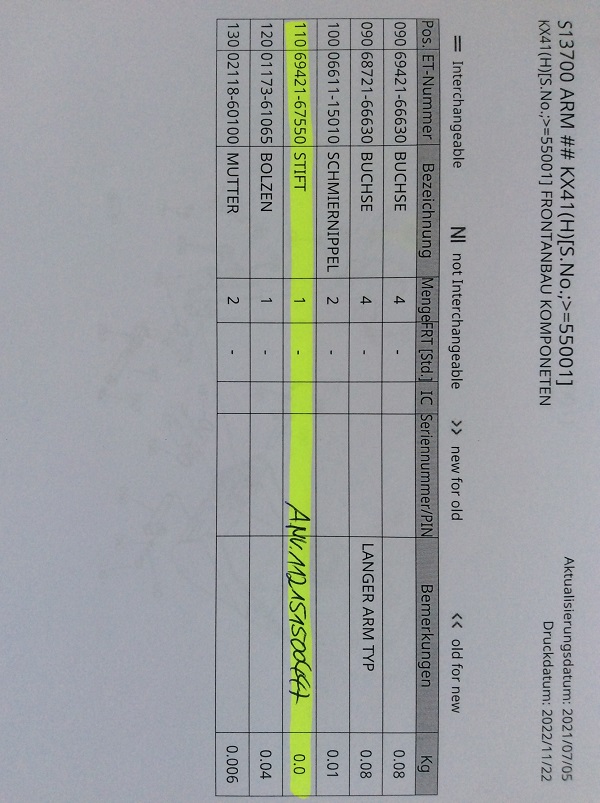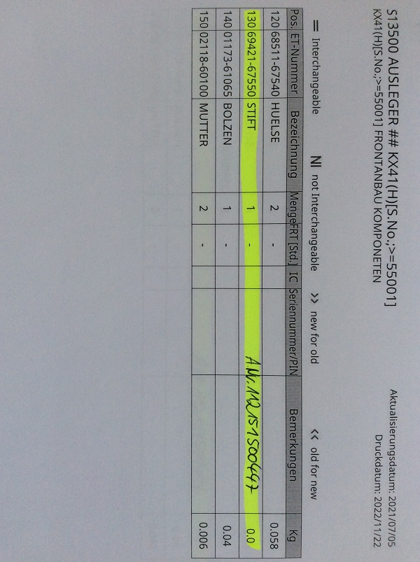1x Bolzen (Pin) für Kubota Minibagger Typ KX41 (H) erste Generation KUB Nr.69421-6755-0 oder 687216756D.