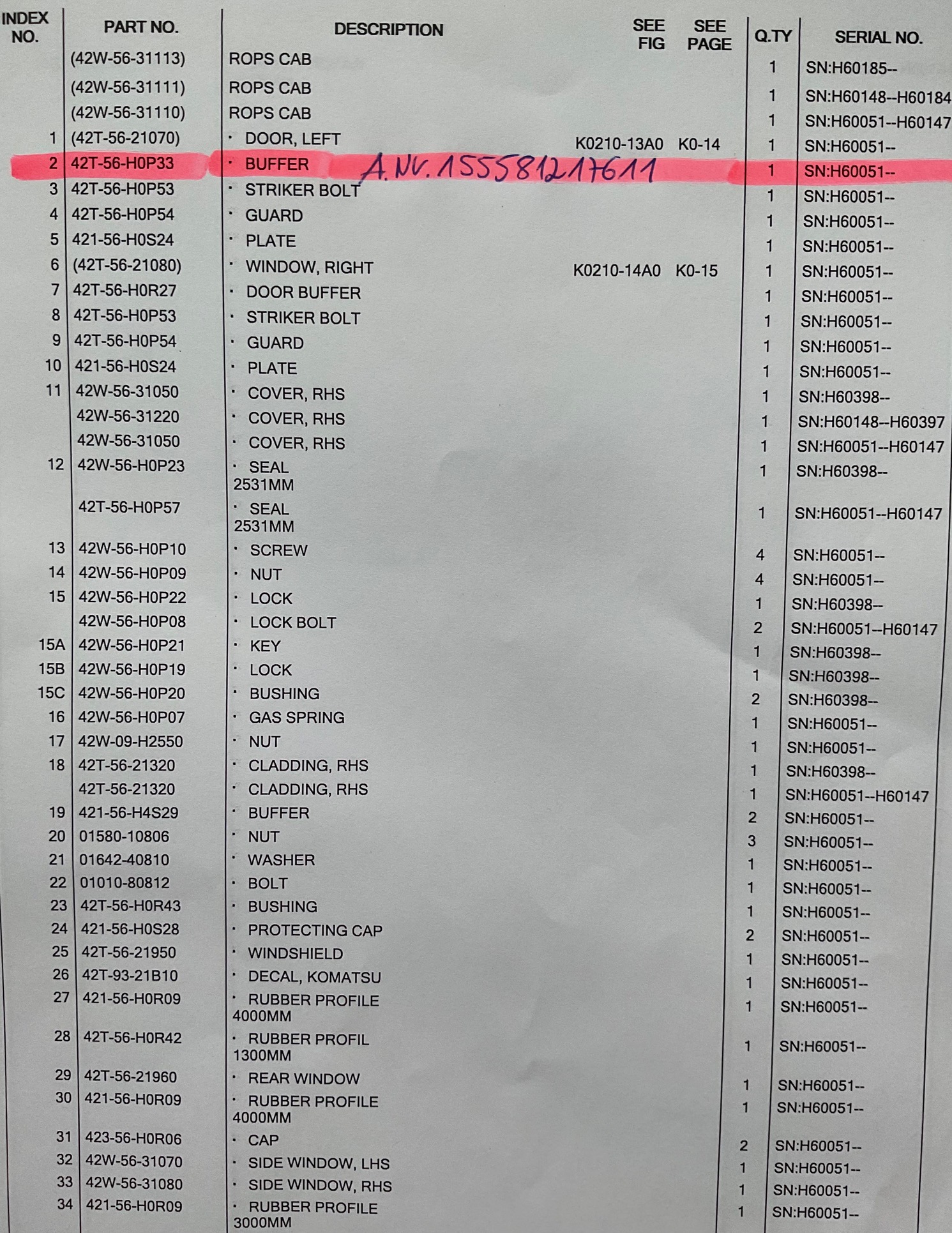 1x Türverriegelung für Kabinentür (key, pin, lock) für Komatsu Minibagger u.a. Typ WA 80-6 Komatsu Nr. 42T-56-H0P33.