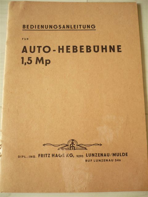 Hoists 1.5 MP 1.5 tons User manual Lunzenau Fritz Hage KG