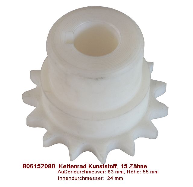 | You are purchasing a unused fully functional chain sprocket wheel plastic (sprocket for chain) for Romeico Atlantic and Nordmeer lift. The exact amount you can enter below the offer price in the number. The sprocket also fits Romeico lift Type Atlantic and Nordmeer. Dimensions: Outside diameter 83/60/50 mm, inside 25 mm and 55mm height, 15 chain teeth. Other parts available for purchase in our shop by clicking on the appropriate Shop Category. After you put the product to the cart, you can purchase additional products in our online shop. We also answer questions via email: admin@awt-shop.de or phone: +49(0)176/21193525 and +49(0)38295/774067. |