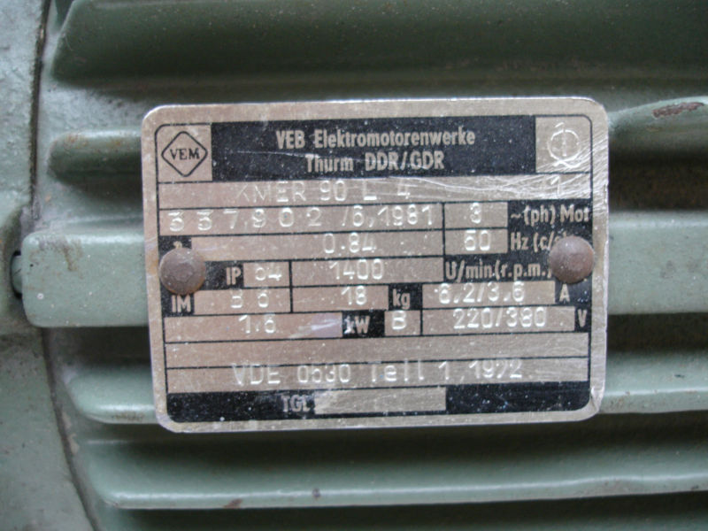 | You are purchasing a pump motor for Takraf Lunzenau Mulde / Fritz Hage KG mobile lifting platforms (1 tons until 2 tons Capacity). The exact amount you can enter below the offer price at the number. We also carry suitable for this type of lift guide rollers, bolts and hydraulic seals. Motor-Data: Motor No. Type KMER 90 L4, 220/380V, 6,2 / 3,6 A, 1,5 KW, 1400 rev / min, 50Hz, 18kg, IP64. Shaft diameter 24mm, width 8mm wedge; flange hole spacing 146mm, 50mm wavelength. Overall length (without shaft) 25cm. Other parts available for purchase in our shop by clicking on the appropriate Shop Category. After you put the product to the cart, you can purchase additional products in our online shop. We also answer questions via email: admin@awt-shop.de or phone: +49(0)176/21193525 and +49(0)38295/774067. |