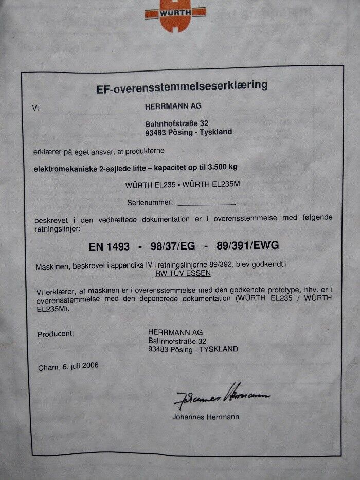 1x support plate for Hermann or Würth W EL 235 WOW Lift 2 post lift - car...