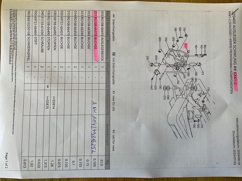 1x bearing bush item 012 for boom block Kubota mini excavator type KX41-2S...
