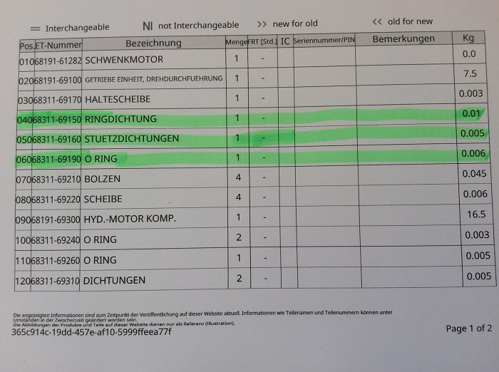 1x seals for vibration motor / rotary motor / Kubota mini excavator type KX41 (H) first generation KUB. #68311-69150 O-ring seal 68311-69160 Back-up seal 68311-69190 O-ring.