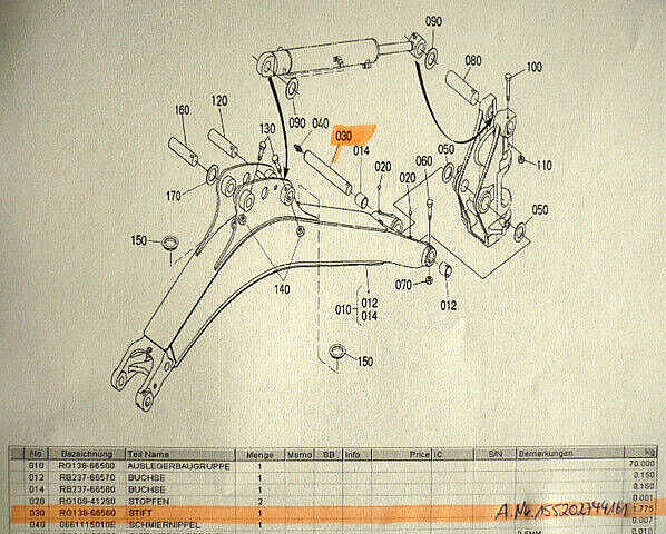 1x original bolt (pin) for boom arm Kubota mini excavator type KX41-3 V /...