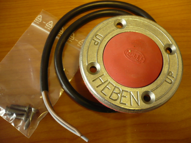 "lift up Red" foot switch with micro switch and connecting cable (78mm-diameter switch) for, inter alia, Liftgate Truck tailgates BÄR MBB Palfinger athlete Cargolift / Lift Parts Manufacturer Hella no. 6EJ 996.067-621.