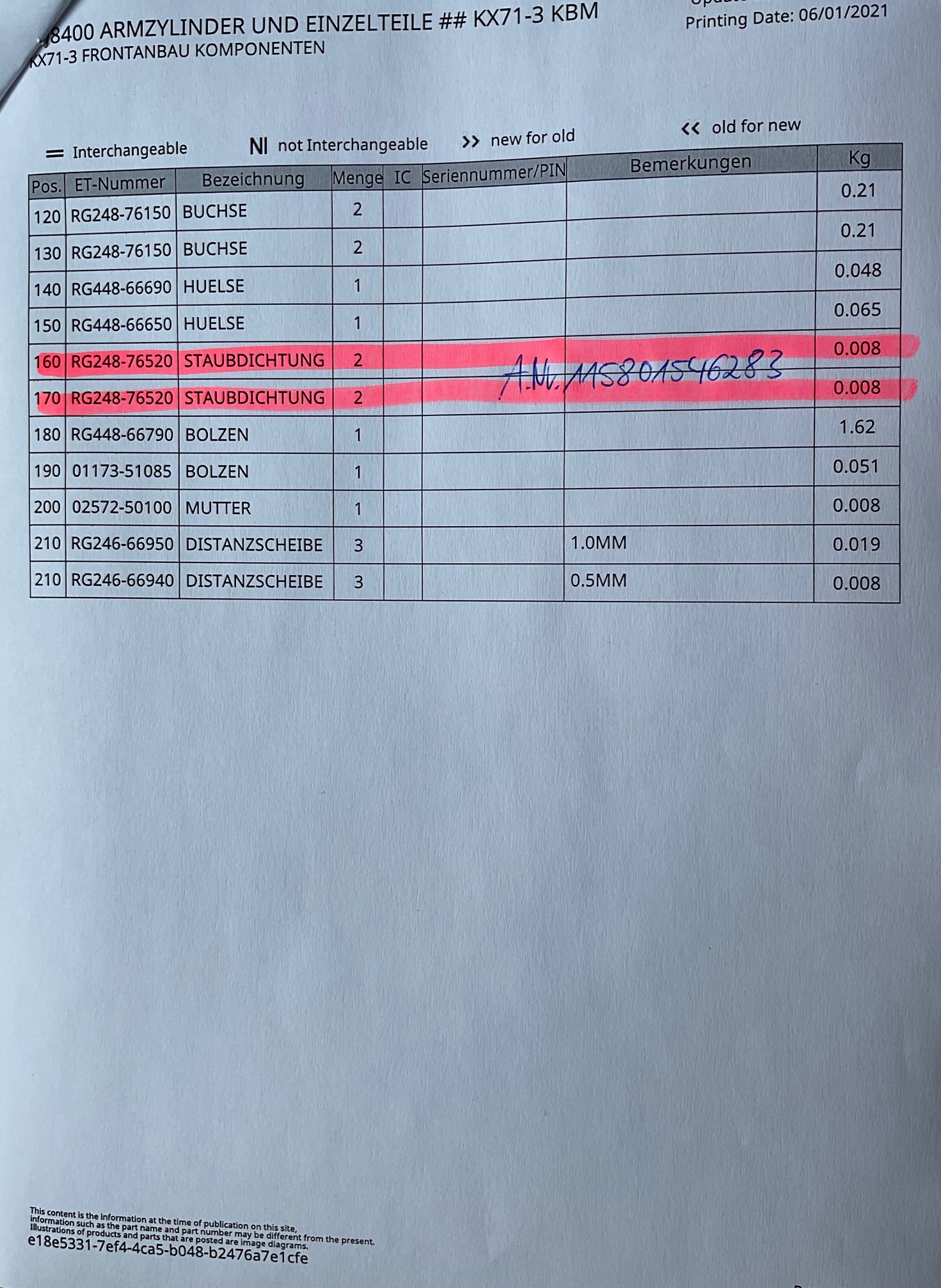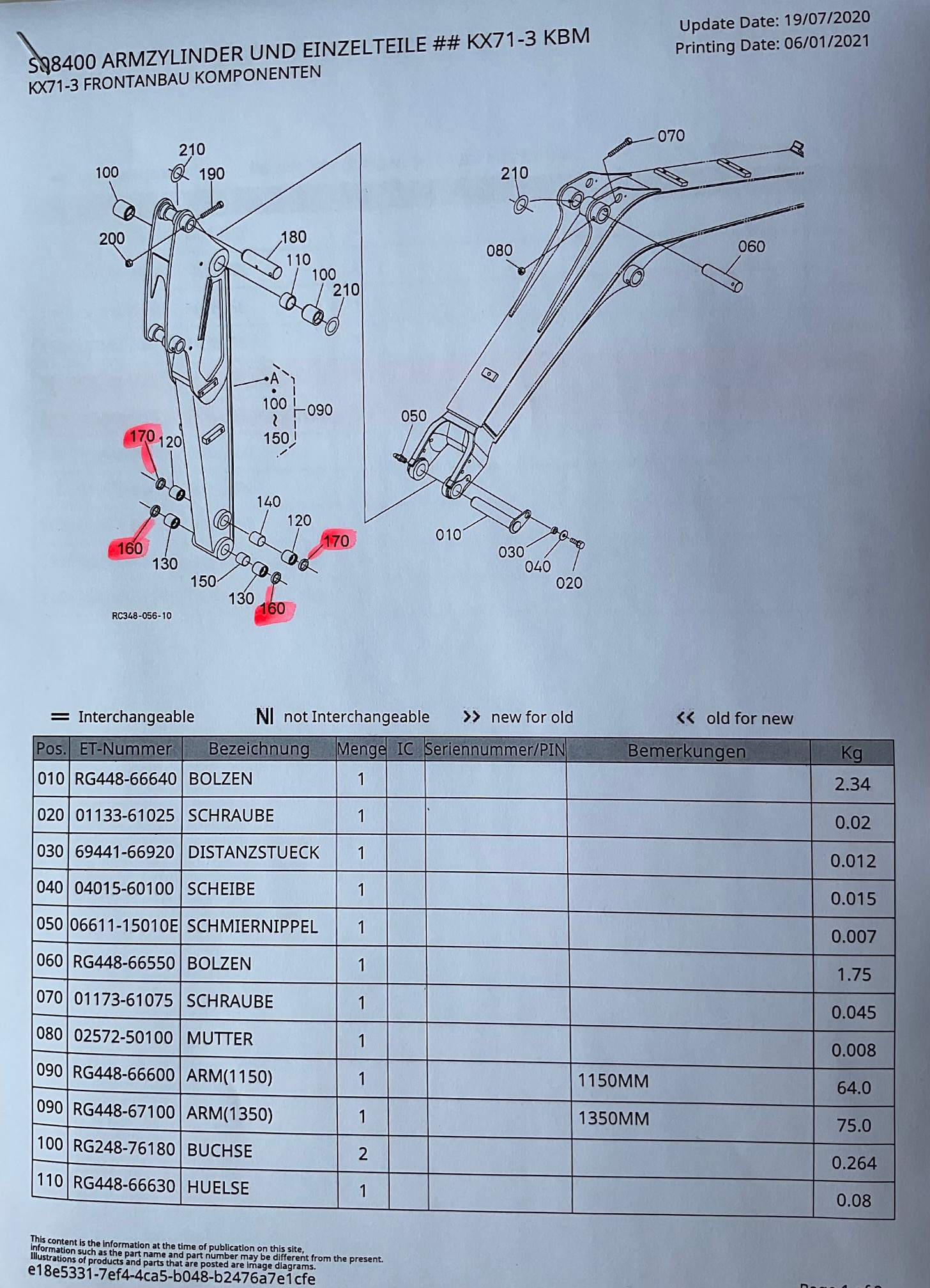 1x socket pin Pos. 170 for, among other things, dipper stick / bucket...