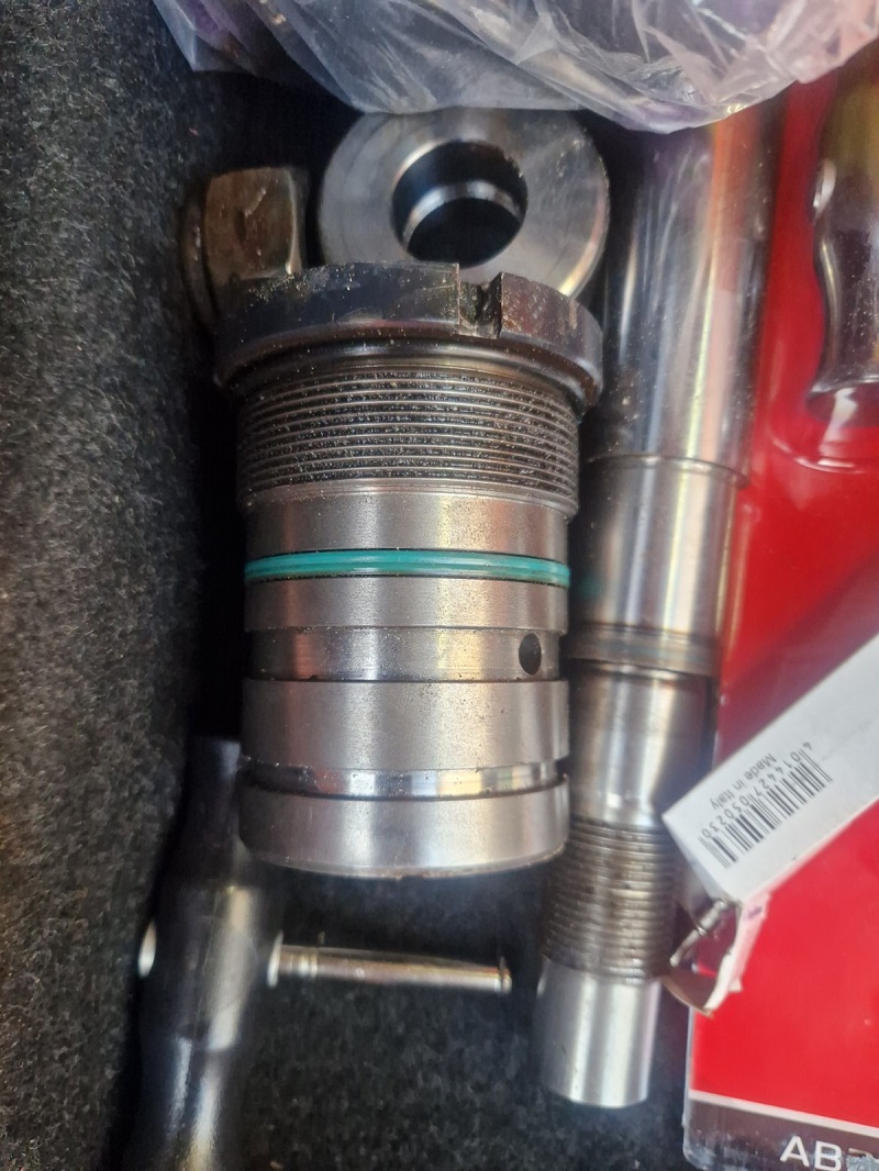 You are purchasing A seal kit including piston seals, guide bands, and scraper rings, among others, for Kubota U27-4 short-tail excavator cylinders on a mounting stand. |