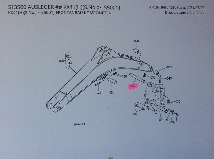 1x pin (Pin) for Kubota mini excavators Type KX 41 (H) first generation...