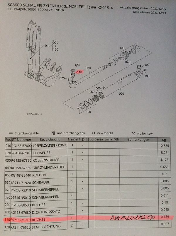 1x bushing for Kubota mini excavators Type KX41 (H) first generation KUB...
