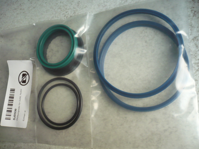 1x seals for a hydraulic cylinder (two cylinders installed - gasket - seal kit - 1x rod seal 1x shaft seal 2x piston seal 2x O-ring) Electro-hydraulic two-ram lift Slift GmbH - underground platform - work platform - lifting platform - among others type DJ 30/1900.