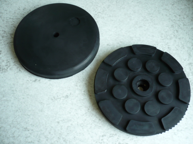 Dimensions: The solid rubber plate is supplied with steel insert and is suitable for 120 mm diameter and 17 mm height. The flat version has a hole in the middle.