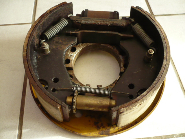 You are purchasing an original new set of brake blocks including brake cylinder and connection for brake line from German production! |